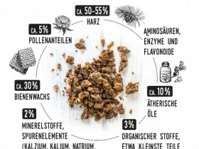 Das gelingt ihnen, indem sie die Bienenmedizin Propolis herstellen und damit alle Ecken ihres Stocks auskleiden, damit sich dort keine Keime und Parasiten vermehren können.