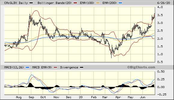 GCM wollte GLDX zu 50 % ihres Kurses übernehmen, damals etwa 44 % Aufgeld entsprechend rd. 3,2 C$.