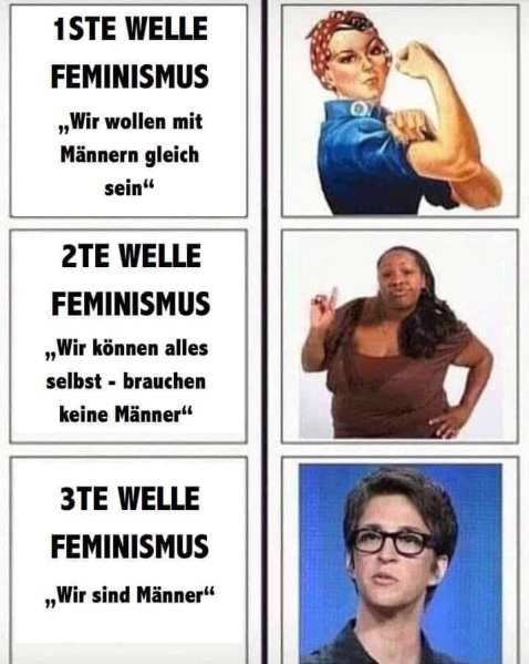Es geht doch bei Mann/Frau nicht um einen Gegensatz. Den wollen die Spalter. In Wahrheit muss man zusammen ein paar Kinder aufziehen und dann sinkt man sowieso bald ins Grab. Diese wenige Zeit sollte man möglichst ohne ideologische Zerwürfnisse verbringen.