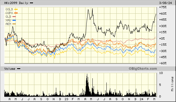 Der stark steigende Kupferpreis treibt HK 2099 neben dem hohen Goldpreis weiter stark an, heute + 5,2 % auf 47,7 HK$.