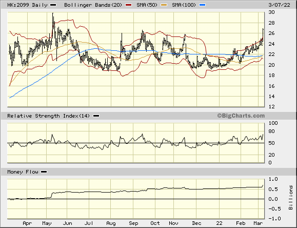 Dies hat den Kurs von HK 2099 (CGG) weiter beflügelt, heute auf dem 2.höchsten Stand in 1 J. Sehr schöner stetiger Verlauf des MF + MACD.