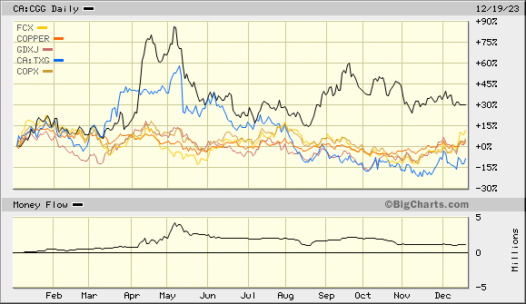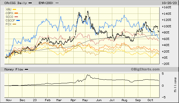 Weiter zugekauft, der Chart CGG : Peers, COPX + XAU scheint dies zu bestätigen.