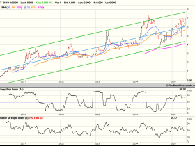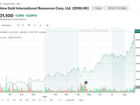 Angehängt ein 5 J Trendkanal der $ Notierung JINFF im Vergleich zu dem Supersenior Freeport McMoran FCX, der eine ähnliche Produktstruktur Cu + Go aufweist.