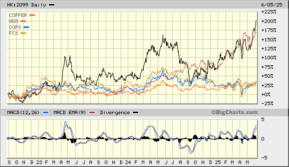 Angehängt ein 5 J Trendkanal der $ Notierung JINFF im Vergleich zu dem Supersenior Freeport McMoran FCX, der eine ähnliche Produktstruktur Cu + Go aufweist.