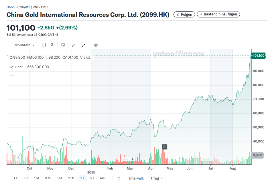 Angehängt ein 5 J Trendkanal der $ Notierung JINFF im Vergleich zu dem Supersenior Freeport McMoran FCX, der eine ähnliche Produktstruktur Cu + Go aufweist.