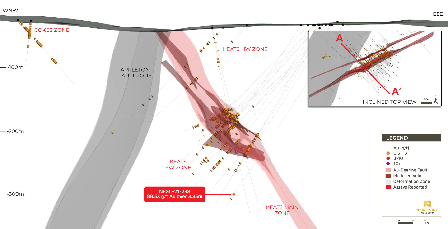 New Found Gold Discovers New High-Grade Zone at Keats; Intercepts 88.53 g/t Au over 3.35m Below Keats Main Zone