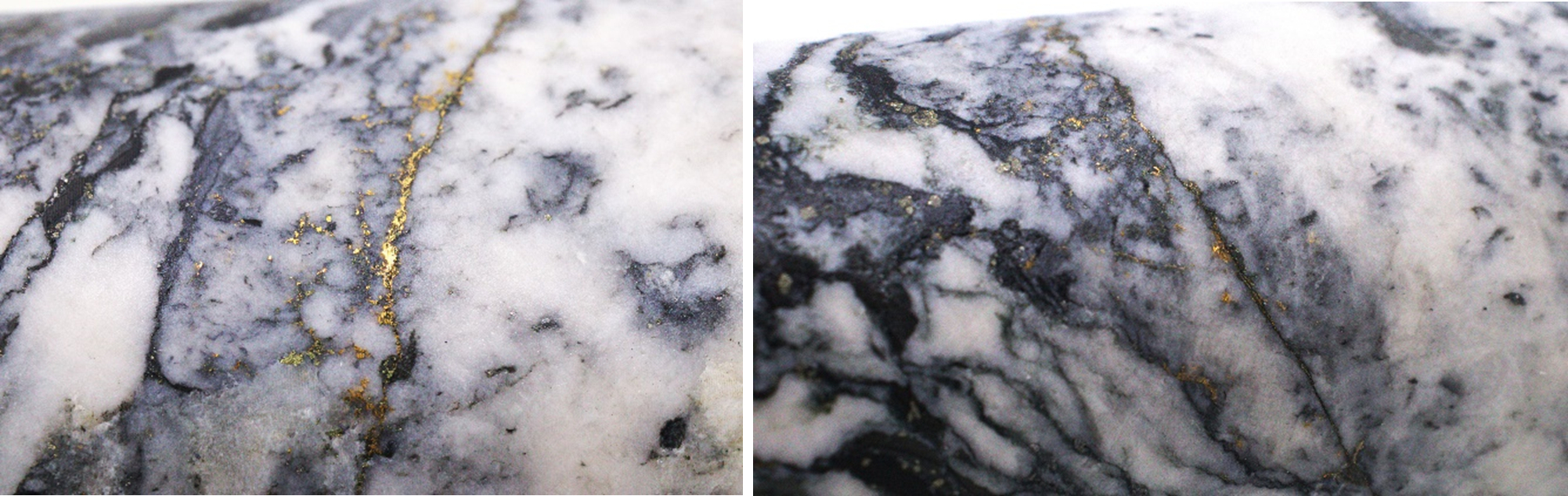 -- Jackpot ist durch eine brüchige Verwerfungszone gekennzeichnet, die mit grobkörnigem, sichtbarem Gold durchzogen ist (Abbildung 1).
