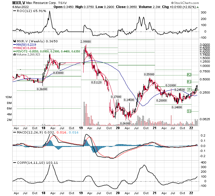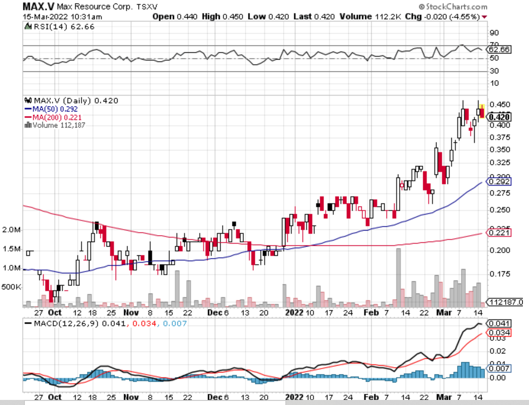 Ich denke also, dass Max auch hier ein großes Potenzial hat. Eines der Dinge, die ich in meinem Buch anspreche und von denen ich noch nie gehört habe, von denen ich aber überzeugt bin, dass ich richtig liege, ist, dass man Aktien nur dann kaufen sollte, wenn sie billig sind. Wenn Sie Aktien kaufen, wenn sie billig sind, und sie verkaufen, wenn sie teuer sind, werden Sie immer Geld verdienen. Max Resources hat eine Marktkapitalisierung von 30 Mio. $, sie haben das Potenzial, 500 Mio. $ oder eine Milliarde oder 2 Mrd. $ zu sein, sie werden das Geld für Bohrungen haben, also denke ich, dass dies ihr Jahr sein wird..." ![]()