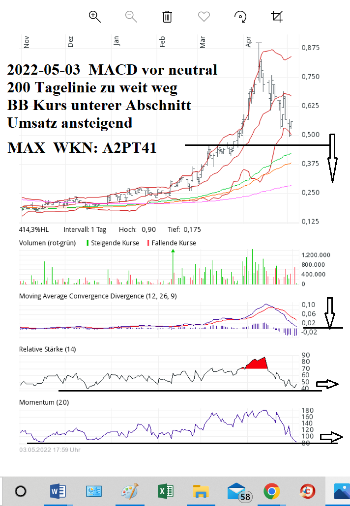 MAX als größte Depotposition steht naturgemäß unter besonderer Beobachtung. Da sie fundamantal kaum bewertbar ist und aktuell keine Infos vorliegen, also ein Blick auf den aktuellen Chart: