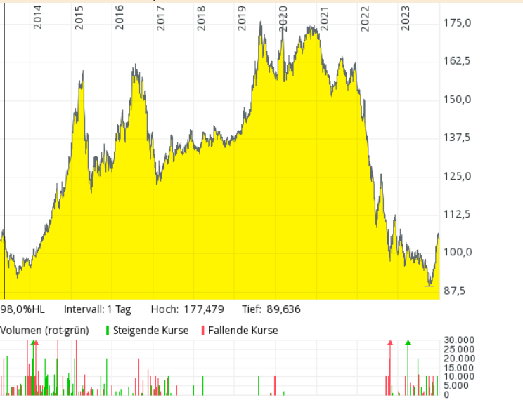 Deutsche Telekom, E.ON, Verizon und Vonovia habe ich unter anderem auf der Beobachtungsliste. Volkswagen ist auch ein heftiges Schuldenmonster.