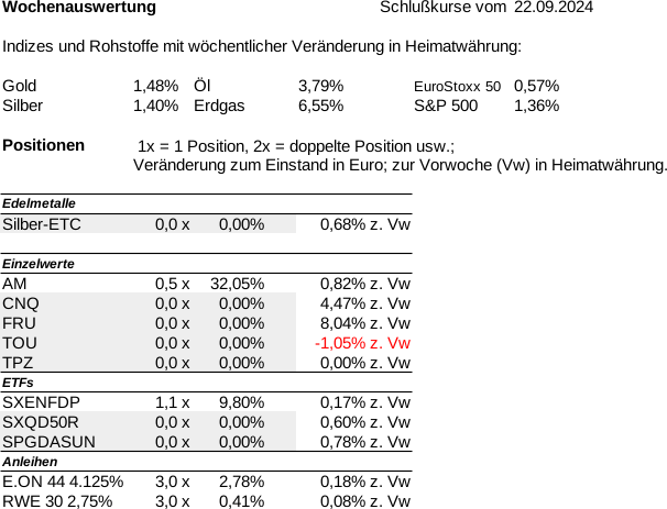 Es gab auch in dieser Woche keine Nachrichten und Änderungen im Depot.