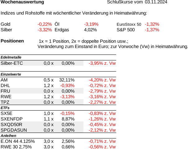 Im Depot kam eine Position E.ON hinzu, die natürlich unter den für die Woche ausgesuchten Werten wieder den schlechtesten Performer stellte. Kurzfristig zumindest.