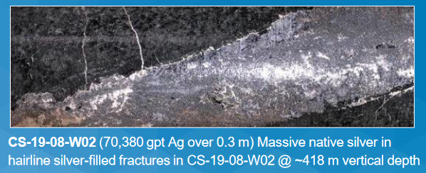 0.3m grading 56,291gt/t AgEq within 4.5m averaging 4,718g/t AgEq