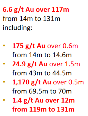 Zurzeit wird weiter gebohrt, angestrebt werden Resourcen von + 1.5Moz AuEq.