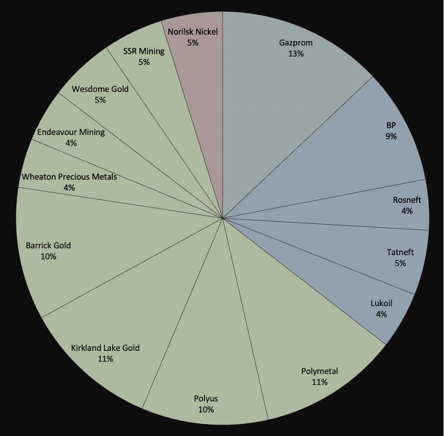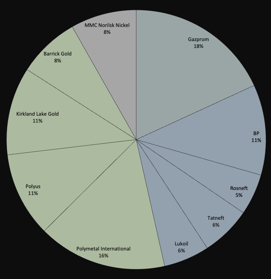Gas ist drin, weil ich Gazprom als unterbewertet sehe, Gas gebraucht wird und NorthStream2 wird schon irgendwie kommen, wenn auch verzögert. Nicht zu verachten ist auch die Pipeline Richtung China die für ordentlich Revenue sorgt.