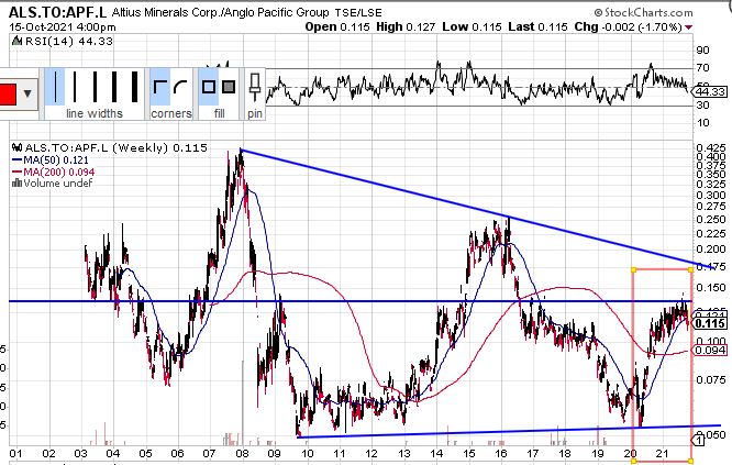 Vor fast 10 Tagen habe ich ALS.TO komplett in APF.L getauscht (hatte mehr Altius als Anglo Pacific). Jetzt der dritte Wochenschluß unter der 200-Tage-Line(=40 Wochen). Kann aber auch verkehrt sein...