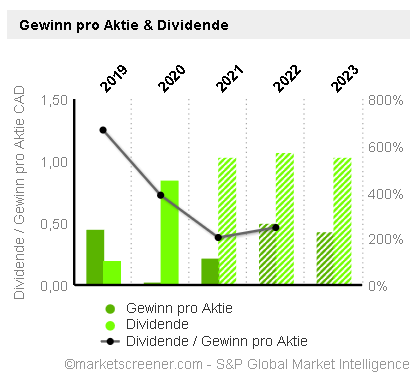 Merkwürdig ist, dass ich deren Homepage bisher nicht aufrufen konnte. Die Firma zahlt Dividende und notiert aktuell knapp unter dem Ausgabekurs von 0,90 CAD.