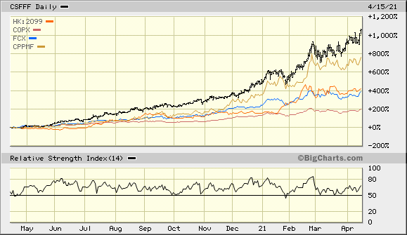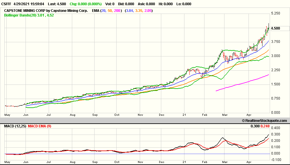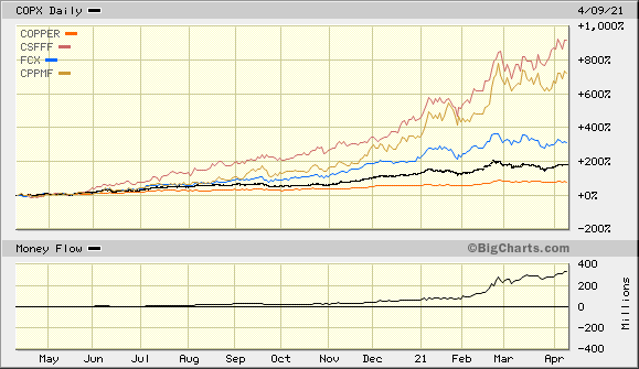 Der Kurs hat erheblich von dem starken Kupferpreisanstieg proftiert, ist aber immer noch rel.sehr stark. Ein Vergleich mit Peer CMMC, dem Riesen FCX sowie dem COPX und Copper im Anhang.