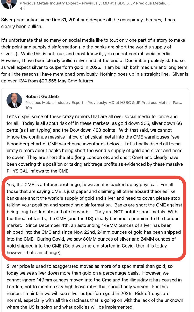 Unlike what Gottlieb is implying, the threat of tariffs on Canada and Mexico #Gold & #Silver are no longer present. Donald Trump has exempted Canada and Mexico #Gold & #Silver from being tariffed.