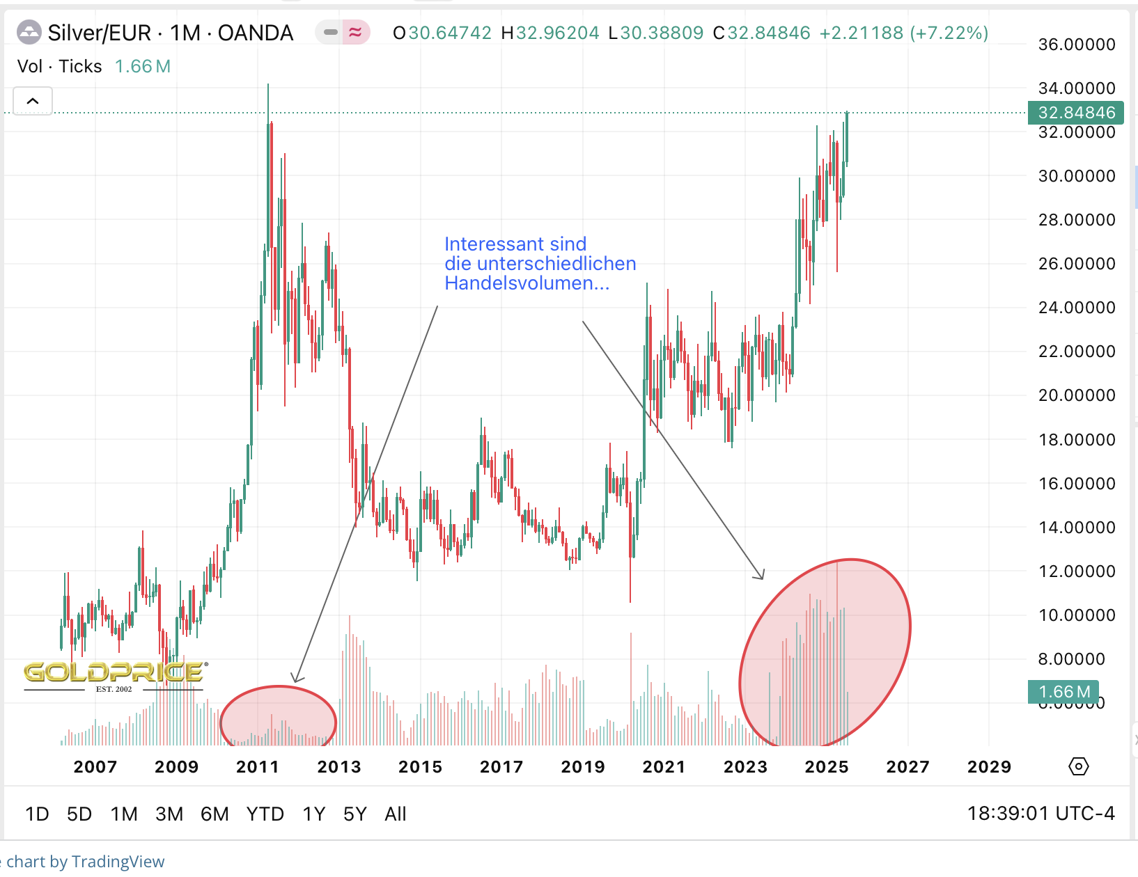 • hat Silber das Top von 2011 in Euronen eigentlich schon überschritten?