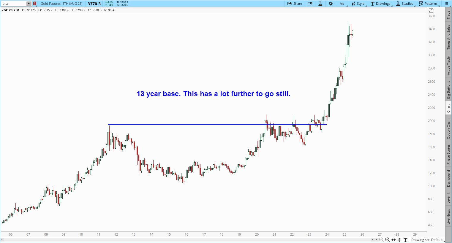 The rule: The bigger the base, the higher in space. We can see this is already in progress in the gold market, and it still has a long way to go. The base in…