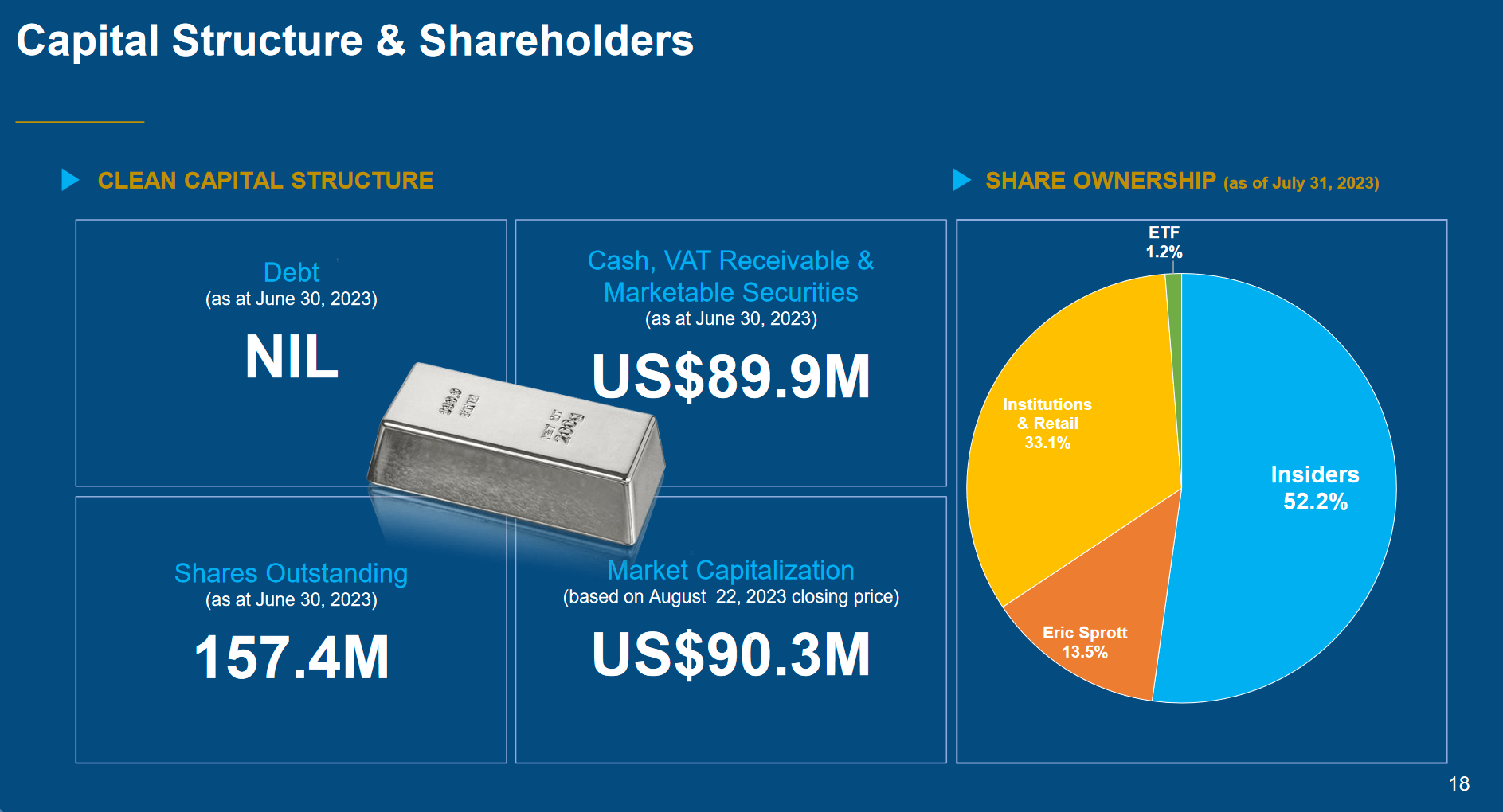 - M&I Ressourcen (Stand Januar 2022): 948 koz Gold, 12,7 moz Silber