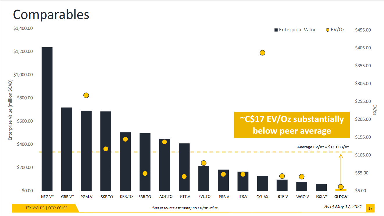Cassiar Gold weist bei seinem Flaggschiff North Cassiar in British Columbia 1 Moz Au @ 1.43 g/t Au Resourcen Inf. aus. Dies bei einer MC von heute morgen noch 25 Mio. CAD. Chairman ist Steve Letwin, ex CEO und Präsident von IAMGOLD. Das Board hält 35 %, Verwässerung liegt im Rahmen. Im Q2 2021 sind 15'000 m Drills geplant.