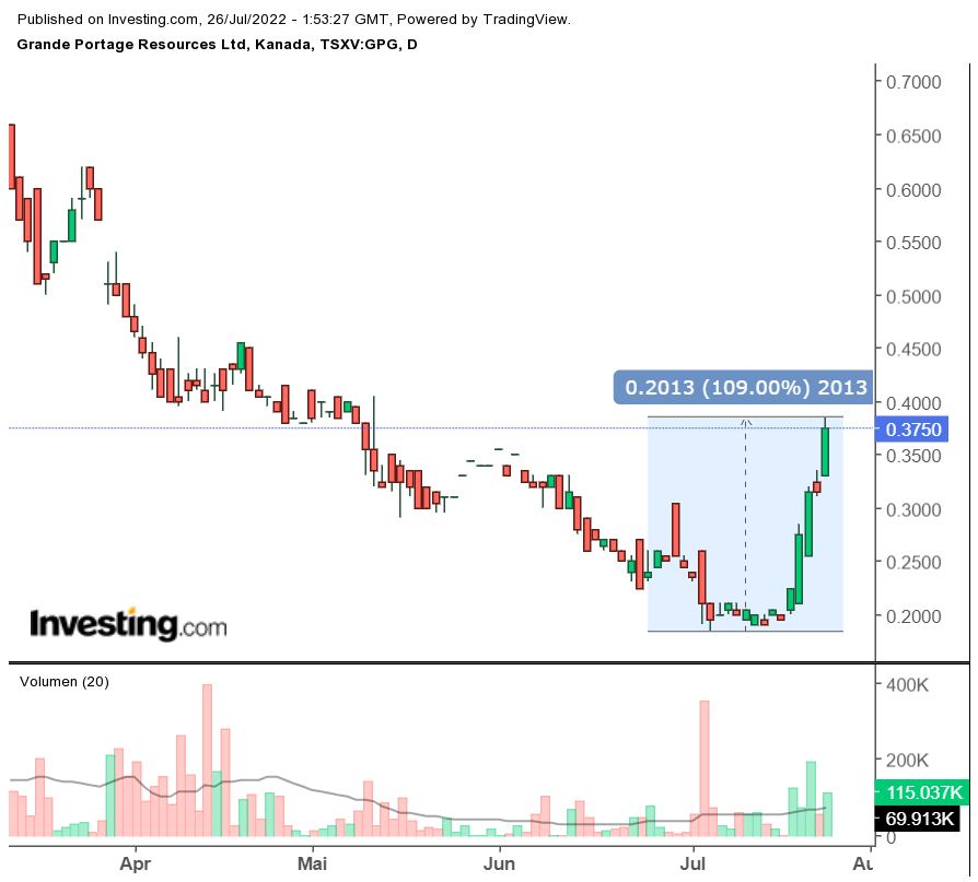 Grande Portage meldet eine ausgezeichnete Resourcenerweiterung. Und weiterhin hochgradig. Ich hoffe, dass das zumindest dem Kurs gut tut. Die MC beträgt haarsträubende 24 Mio CAD. Wir sind im Trading Halt. Im Prinzip ist der Gold Explorer Markt am Boden. Es fliesst kein Geld rein...
