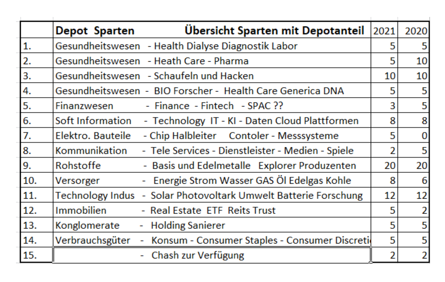 Der Durchschnitt des S&P Wachstums beträgt 7,5%, Dies liegt über Inflation und sichert Vermögen. Mit ETFs von Regionalen Indices möchte ich daran partizipieren und meine Anlagen diversifizieren. 15%