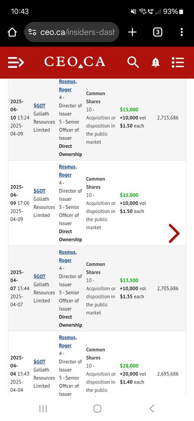 Entsprechend haben sich viele Anleger bereits entschlossen, ihre Warrants auszuüben und in Goliath-Aktien umzuwandeln. Daraus flossen dem Unternehmen von CEO Roger Rosmus allein seit Anfang dieses Jahres rund 3,157 Mio. CAD zu! Und es waren beileibe nicht nur Privatanleger, die beteiligt waren.