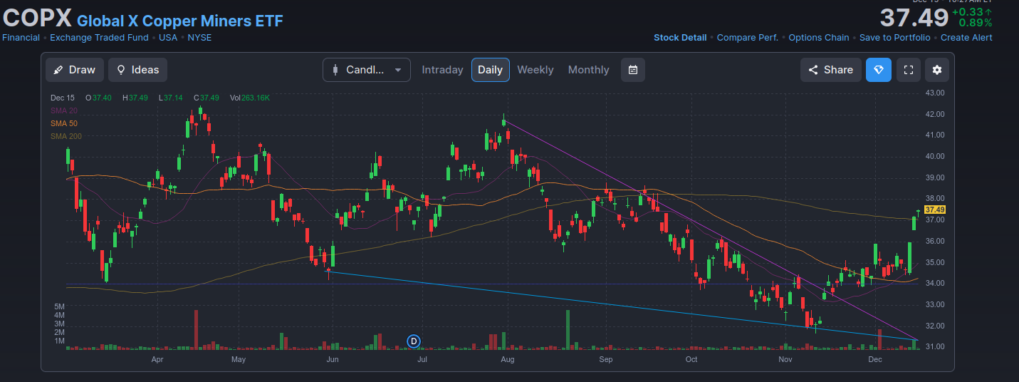 Seit Tagen haussieren Kupferaktien, sh. COPX.... Warum ? Einer der Gründe, der Kupfer Future erholt sich ebenfalls von Tiefständen....: