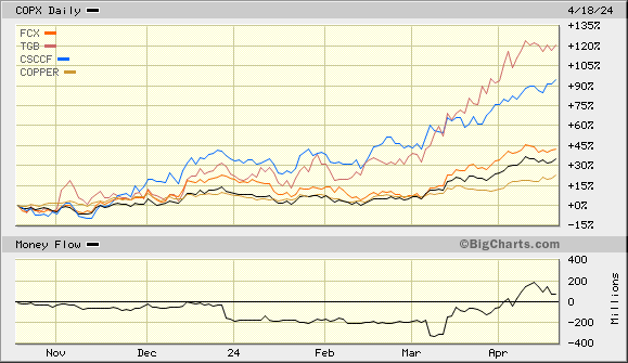 Die Kupferaktien haussieren auf breiter Front, die Schwergewichte Souther Copper/ SCCO , Freeport Mc Moran / FCX, Capstone Copper /CS und Taseko / TKO mit einderucksvollen Hochs. [smilie_blume]
