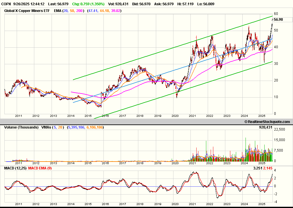 Mit neuen Mehrjahreshochs (ATHs) . Der Hupfer nach dem FCX Desaster ist gut auch im langfristigen Trendkanal erkennbar.