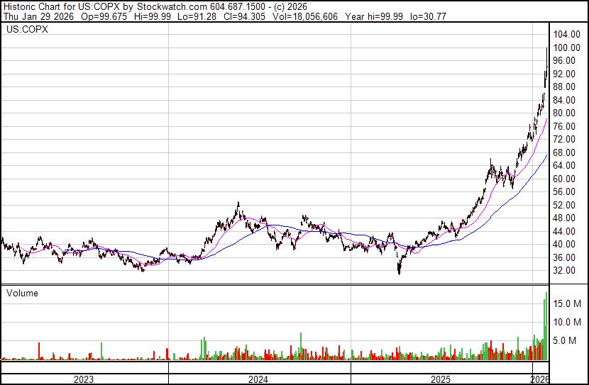 Und nun kommt`s: Die Kupferaktien sind in einem ähnlich starken Anstieg, wie es Silber war ![]()