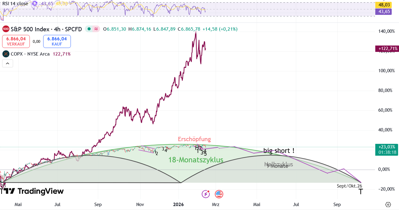 und hier der (überproportionale) Gleichlauf mit dem S+P 500 im 18-Monate-Zyklus !