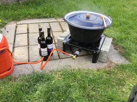 In der einzigen Außentasche am Beckengurt hab ich eine Kochflasche die ich auch als Trinkflasche nutze. Der Kochteil ist immer am Rucksack, währen dich die Flasch täglich nutze. Auf der anderen Seite hab ich eine leere Außentasche (braucht man immer mal..).