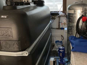 Hier unsere Anlage, habe zusätzlich noch 300ltr Druckspeicher rechts silbern im Bild.