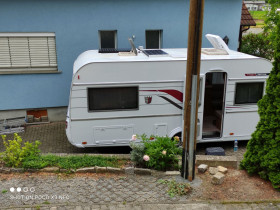 Die Module habe ich zu besonderen Konditionen bekommen. Der Ertrag auch bei Bewölkung ist sehr gut. Es soll demnächst noch eine Aufdachmarkise drauf. Erweiterung deshalb mit Solartasche. Damit ist man auch flexibel wenn die Kiste im Schatten steht. In dem Zusammenhang sei noch erwähnt, das bei einem Wohnwagen das Gewicht auf dem Dach einen erheblichen Einfluß auf das Gespann in den Fahreigenschaften nimmt. Daher sind die Modue perfekt. Die Markise bringt 30 Kg auf das Dach - Thule Omnistore von Obelink (Best Price). Der Wohnwagen wurde von mir in der Gesamtheit betrachtet, damit er ausgewogen daher kommt. Auf der Deichsel ist noch ein Fahrradträger verbaut. Ein Mover am Rahmen - die Stützlast will auch beachtet sein......