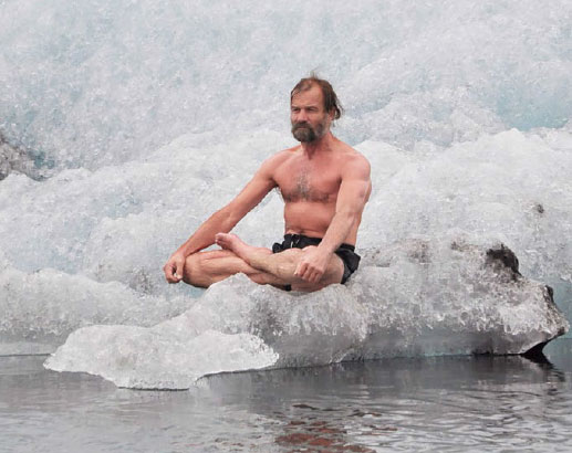 • Ein Deutscher wärmt sich am Eisblock.