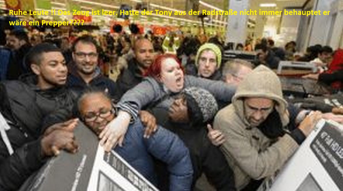 Schlimmste was man tun kann, sich im noch funktionierenden System als "Prepper" outen.ZitatDarkEnd: Täuschen und tarnen! Rumjammern, an den ersten Tagen ohne Strom/Heizung abends an der Feuerstelle im Vorgarten wärmen und dabei alte Pappkartons und den Sperrmüll aus dem Keller verbrennen....
