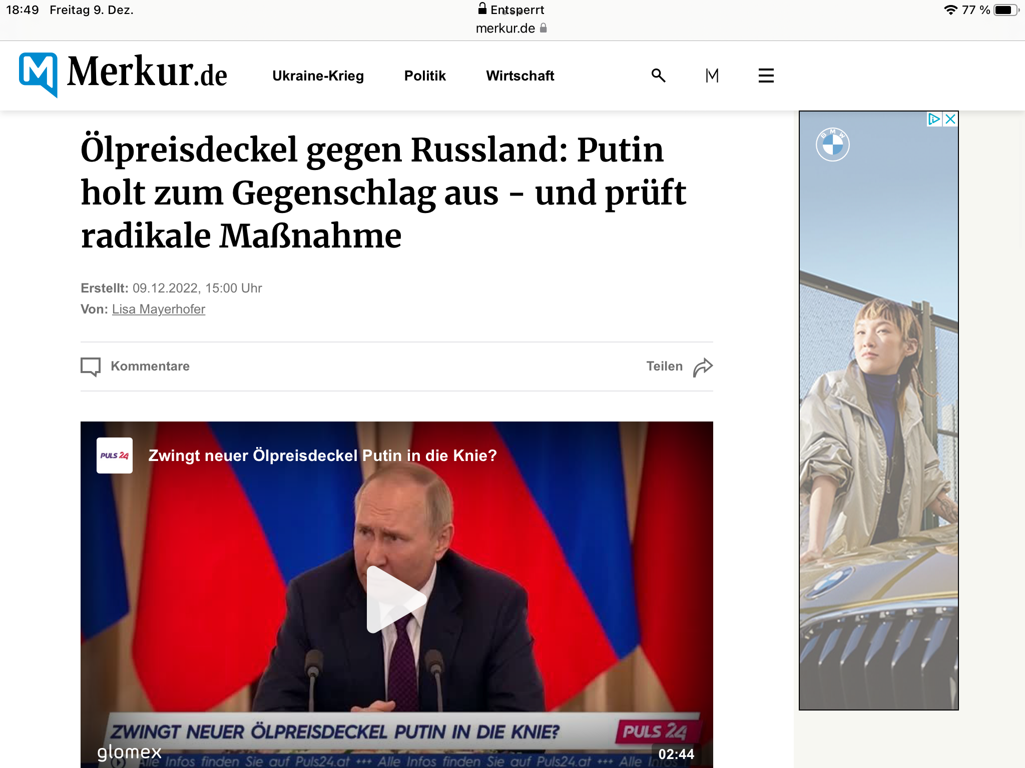 Herr Putin antwortet auf den Ölpreisdeckel.