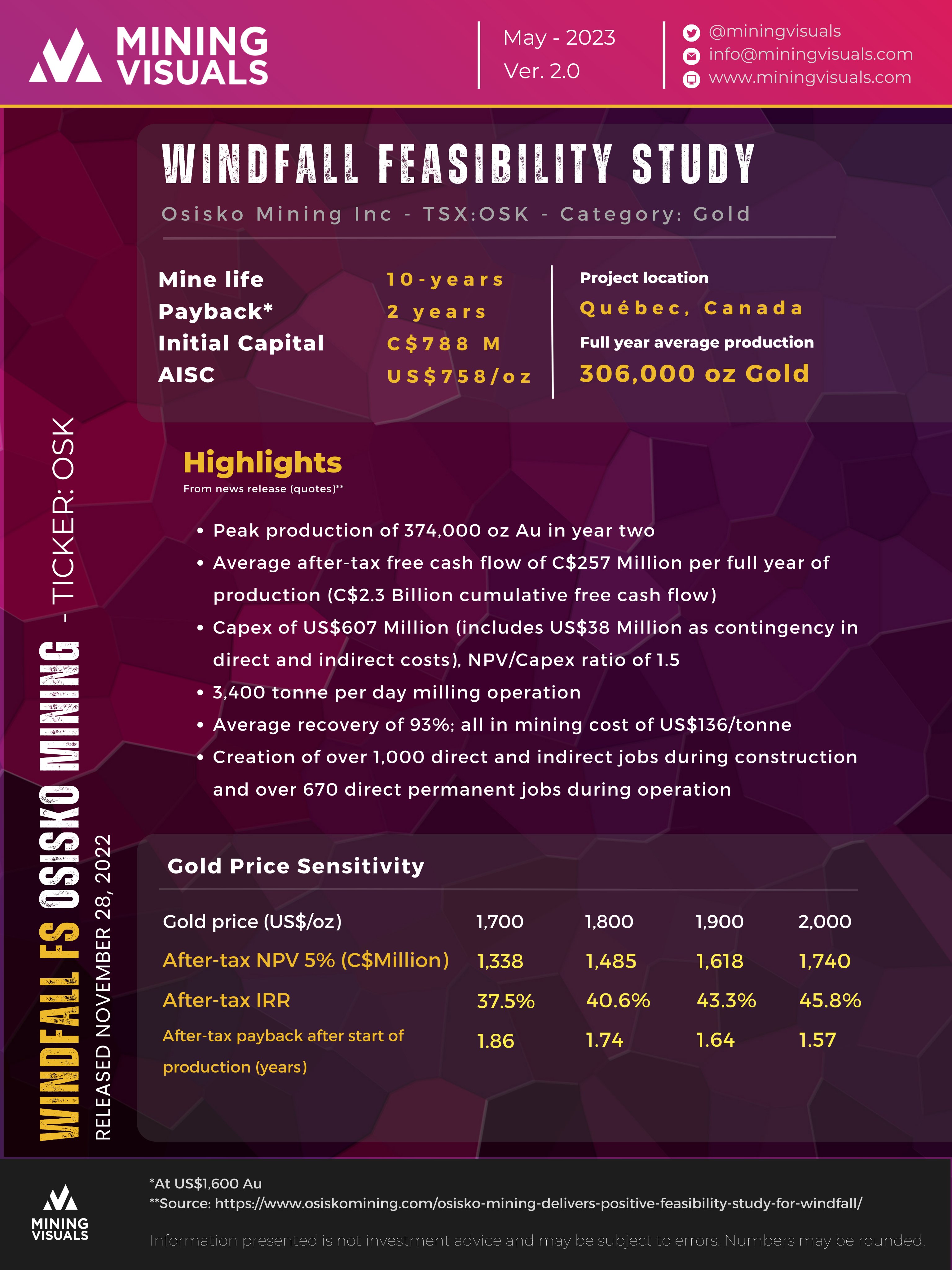 - Gold Fields additional (“Deferred”) cash payment to Osisko of C$300 million on issuance of the applicable permits authorizing the construction, operation and mining of the Windfall Project.