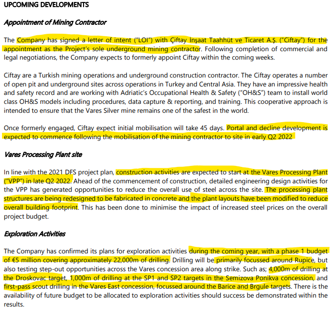 ADRIATIC METALS - VARES PROJECT CONSTRUCTION UPDATE