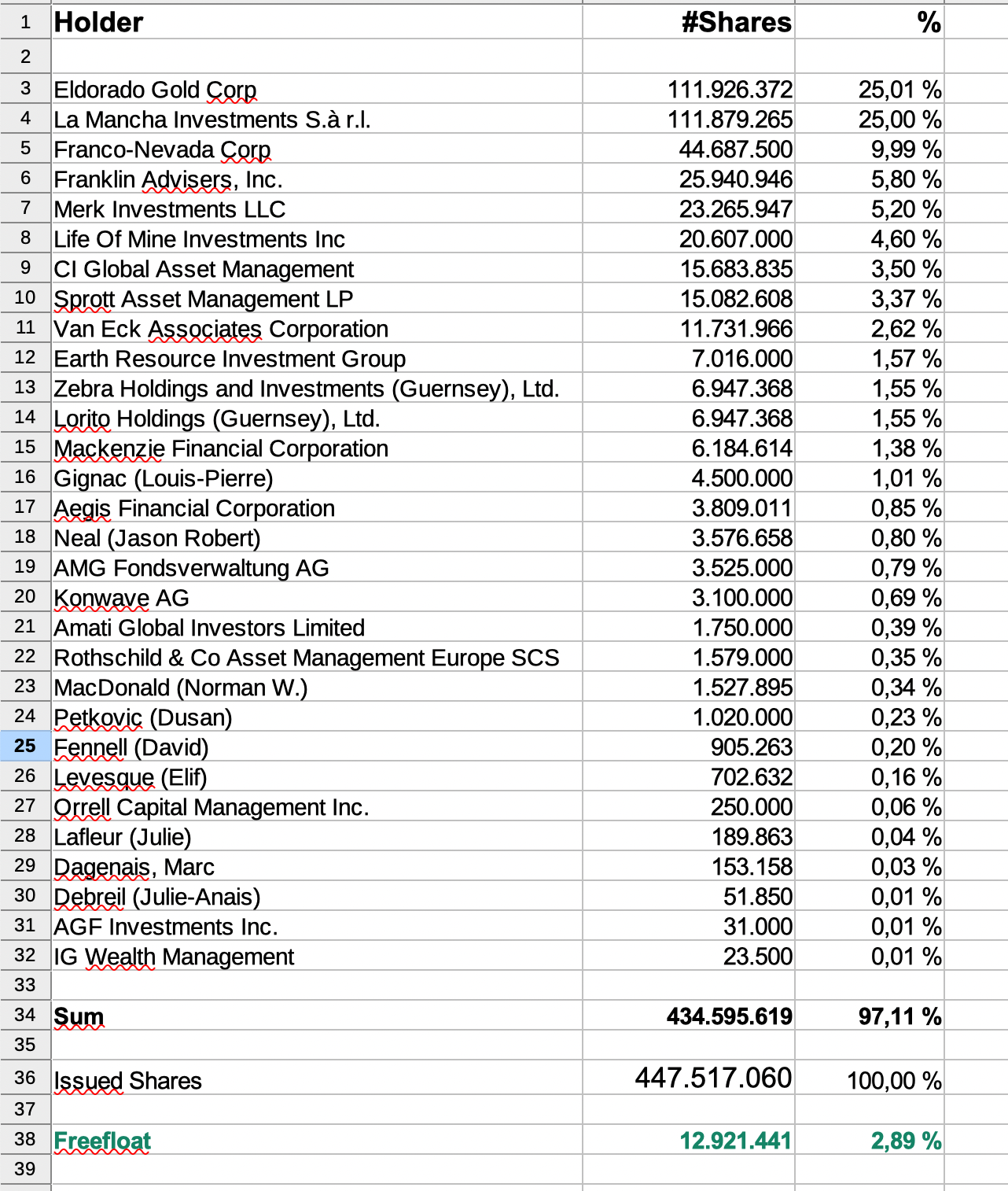 Da wir bestrebt sind, das Vermögen unserer Aktionäre gut zu verwalten (und wir alle selbst Aktionäre des Unternehmens sind), werden alle Finanzierungsoptionen auf der Basis des Zuwachses pro Aktie bewertet. Die Kreativität, die in die Strukturierung des Erwerbs von TZ von Eldorado Gold eingeflossen ist, und die Kapitalstruktur des Projektfinanzierungspakets können als Grundlage für mögliche zukünftige Akquisitions- und Finanzierungsoptionen dienen.