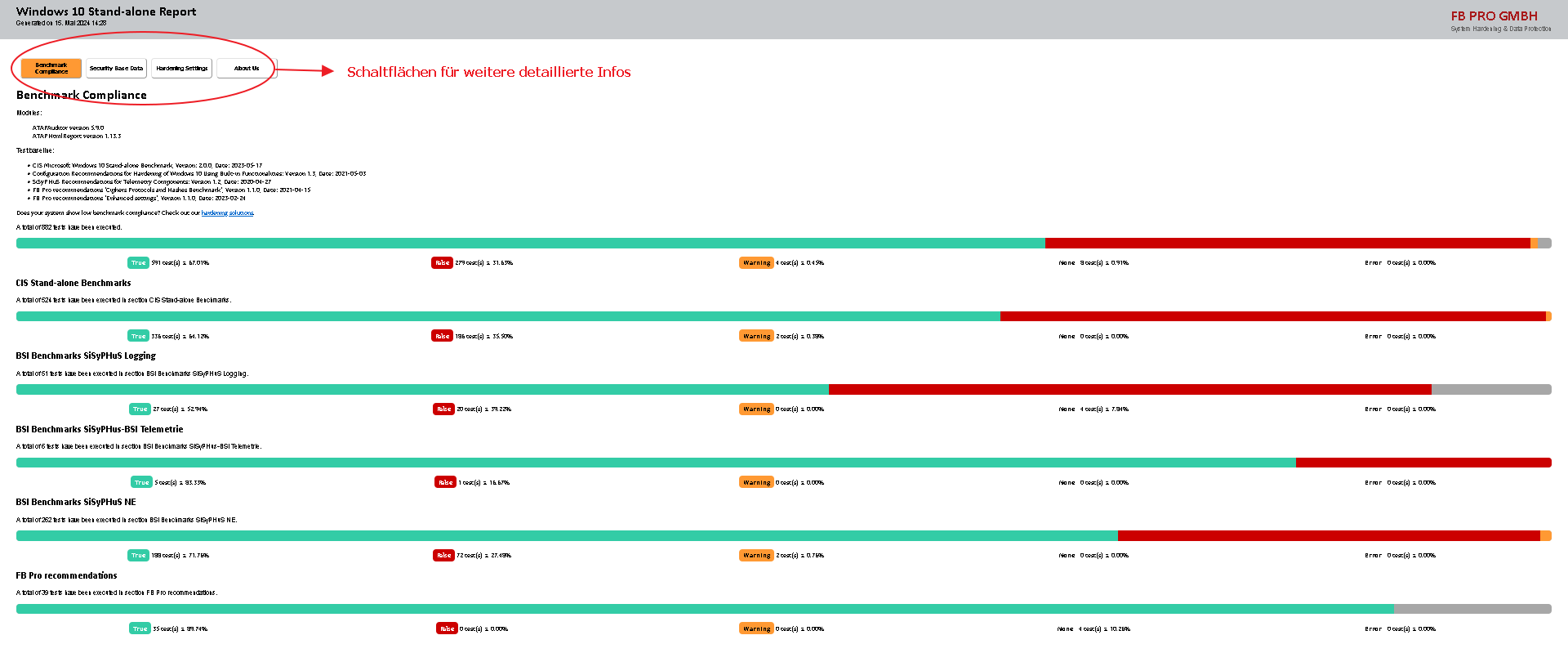Das Tool prüft die Härtungseinstellungen des eigenen Rechners und erzeugt eine übersichtliche HTML-Seite wo man in der Tabellenansicht alle einzelnen Prüfpunkte einsehen kann.