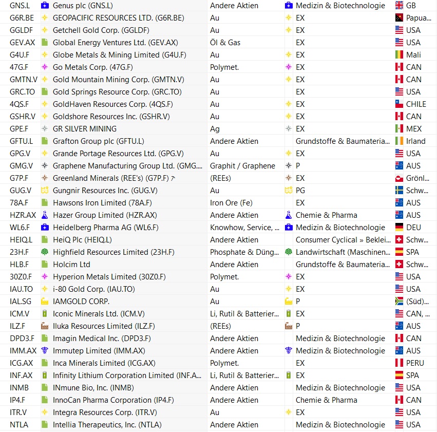 Ich habe mir daher alle Aktien aus "Popeyes Corner" angesehen und mal hier für euch aufgelistet ohne gleich 65 Seiten zu füllen.