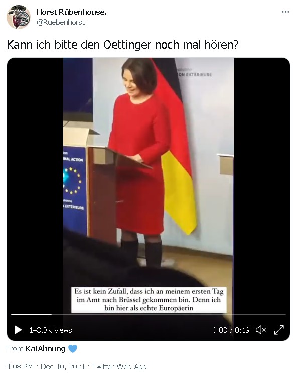 die Alte hat nicht einmal eine Woche Amtszeit auf dem Buckel und hat China mit einem Wirtschaftsboykot gedroht, den Russen die Nichtgenehmigung von North Stream 2 mitgeteilt, Putin gleich einmal die eigene grüne Begeisterung für die atomare Teilhabe bei der Nato mitgeteilt und darüber hinaus noch jede Menge Einladungen Richtung Afghanistan verschickt. Jeder Psychologe müsste sich eigentlich die Hände reiben. Dieses Weib überlebt Deutschland kein Jahr. Der Umfall-Lindner und der Kinderbuchautor halten derzeit auffällig die Klappe.
