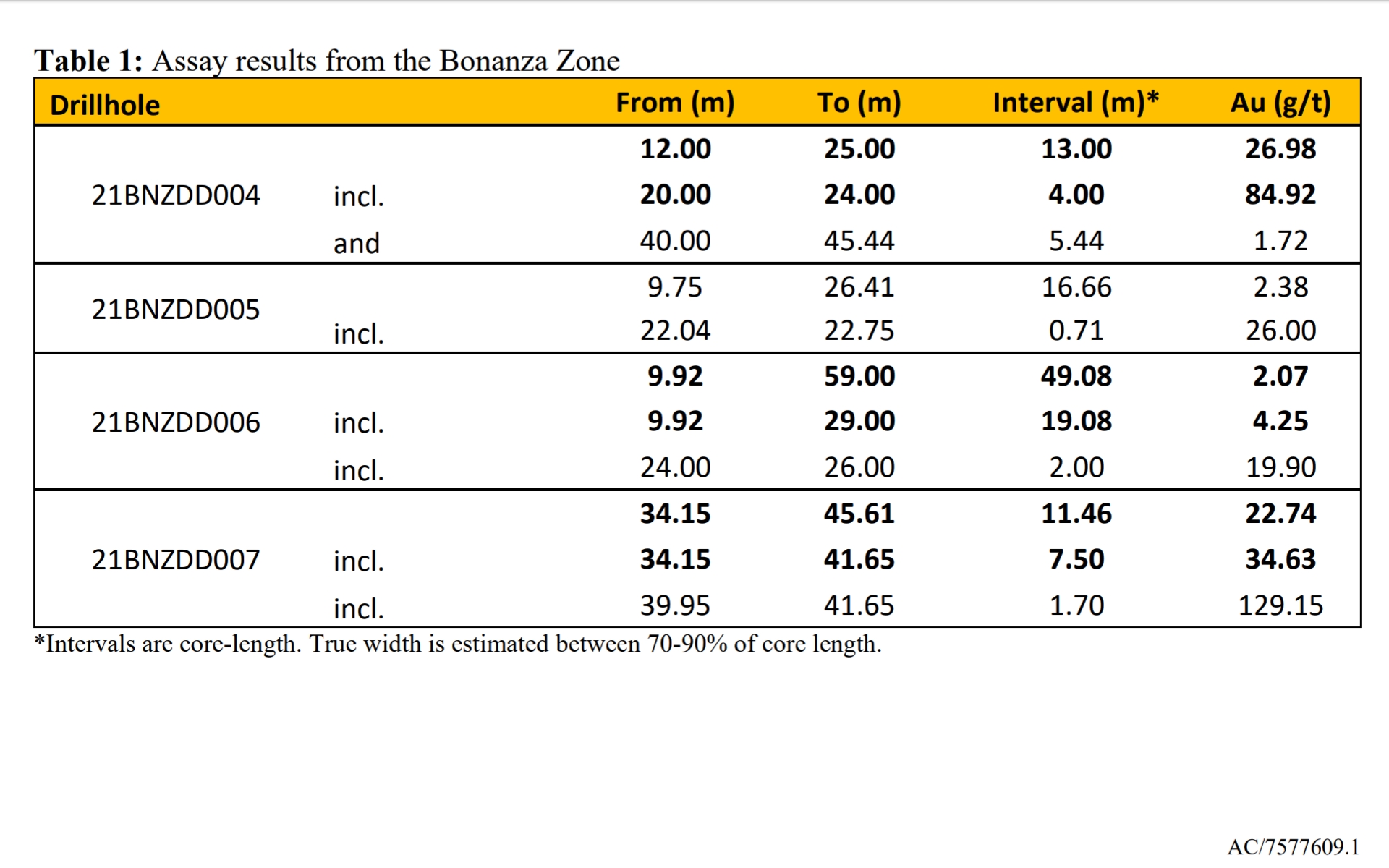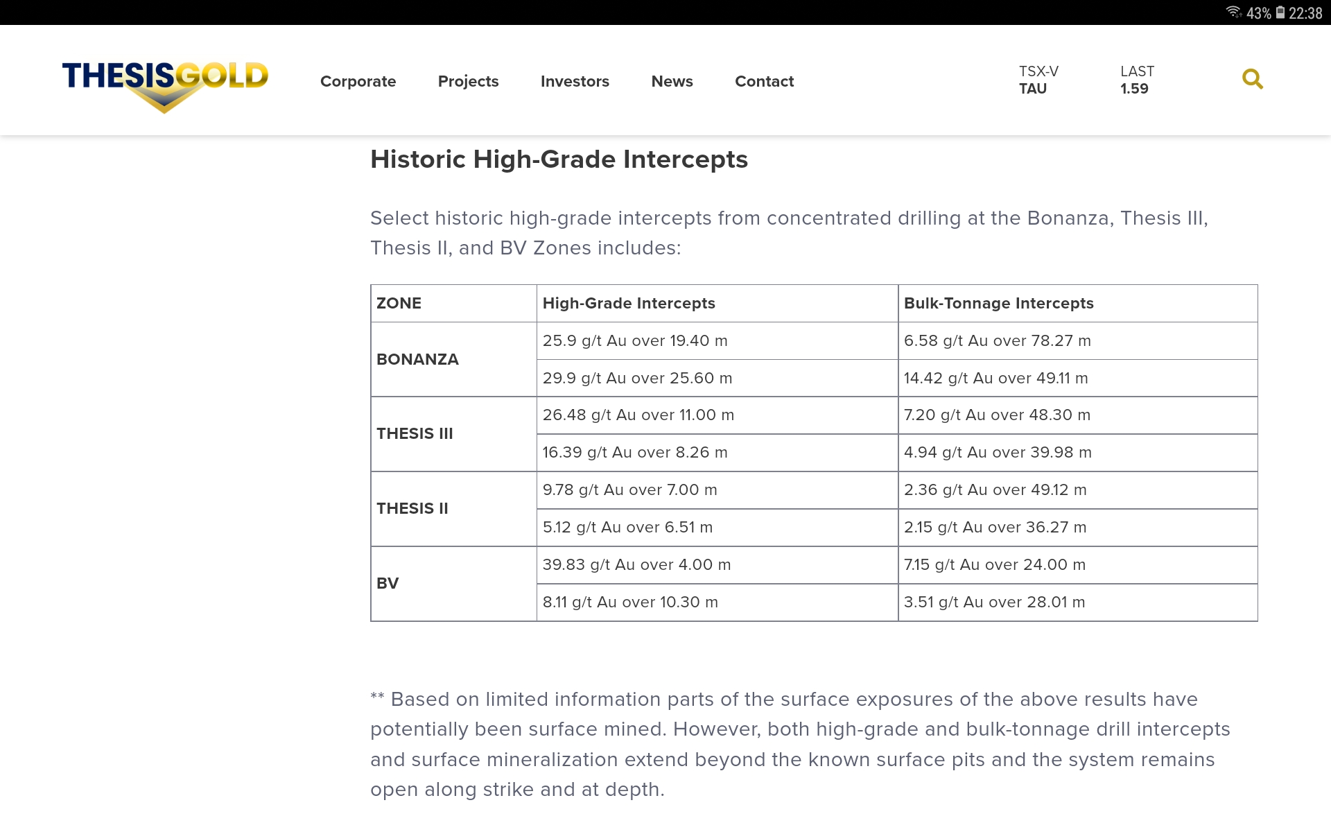 Thesis Gold zog in den letzten Tagen meine Aufmerksamkeit auf sich, da vor einer Woche hervorragende Bohrergebnisse gemeldet wurden (siehe Anhang), die Bob Moriarty gestern schon zu einem Vergleich mit den Anfängen von Great Bear Resources veranlasst haben: