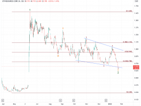 Zitat von NebelparderNichtsdestotrotz könnte es jedoch evtl. noch ein letztes Mal korrigieren, solange die 1,04 C$ nicht überwunden werden. In diesem Falle wären nochmals Kurse um 0,69/0,70 C$ möglich. (evtl. Ending Diagonal Triangle)