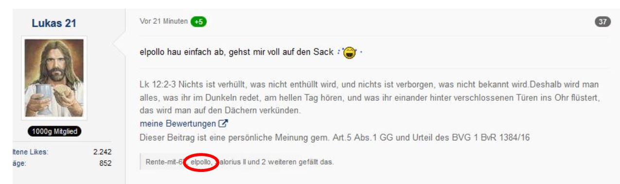 • Immer noch da, bescheidener Salorius? :hae: Verdreh nicht die Tatsachen. Ich habe die Ehrlichkeit von Lukas honoriert und geliked. Bei dem könntest du dir mal eine Scheibe abschneiden.